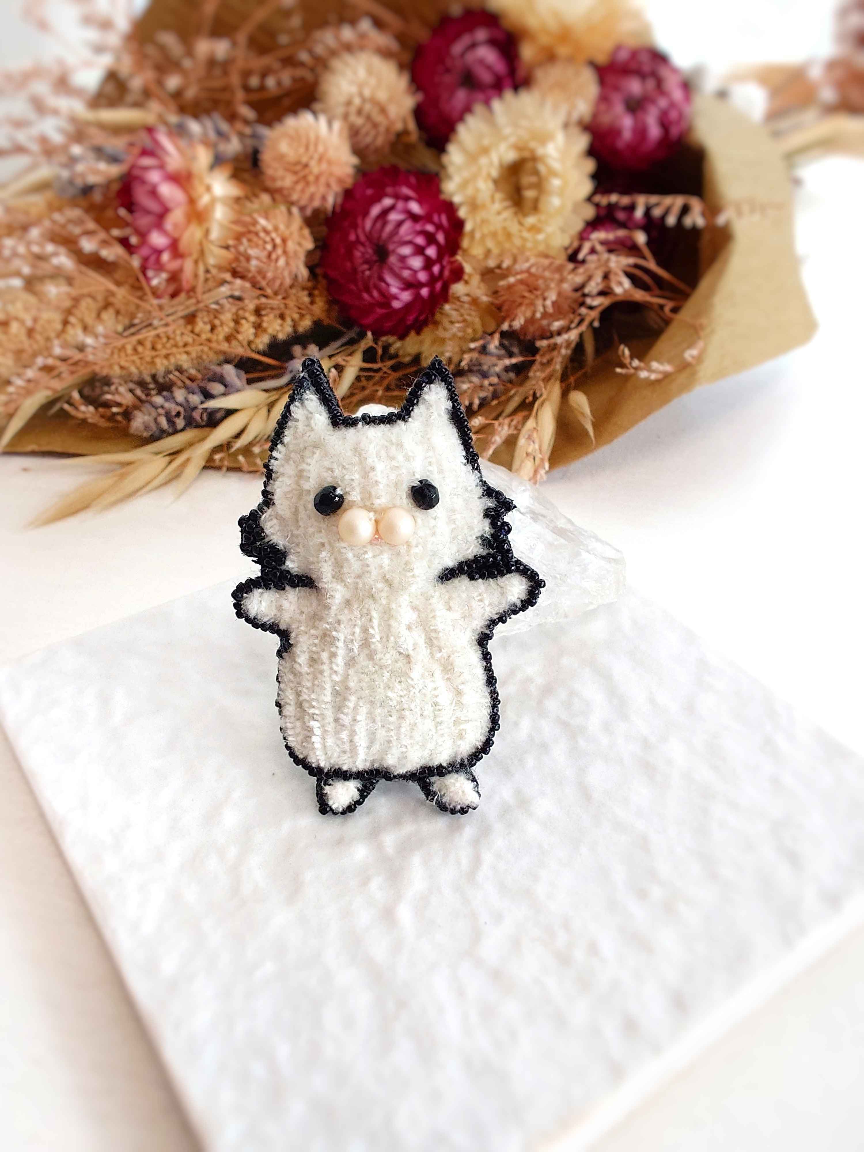 モフモフ感を出すための糸選び、微妙なタレ目を表現するためのビーズ選びも拘って作った点です。